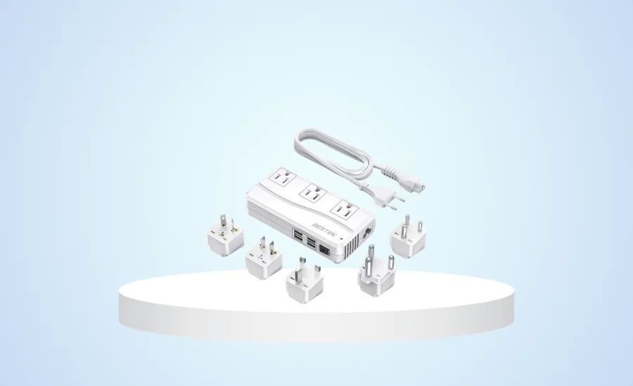 | Bestek Universal Travel Adapter | Voltage conversion (220V to 110V), 4 USB ports, cooling fan | ~$39.99 | 3 AC, 3 USB-A, 1 USB-C |