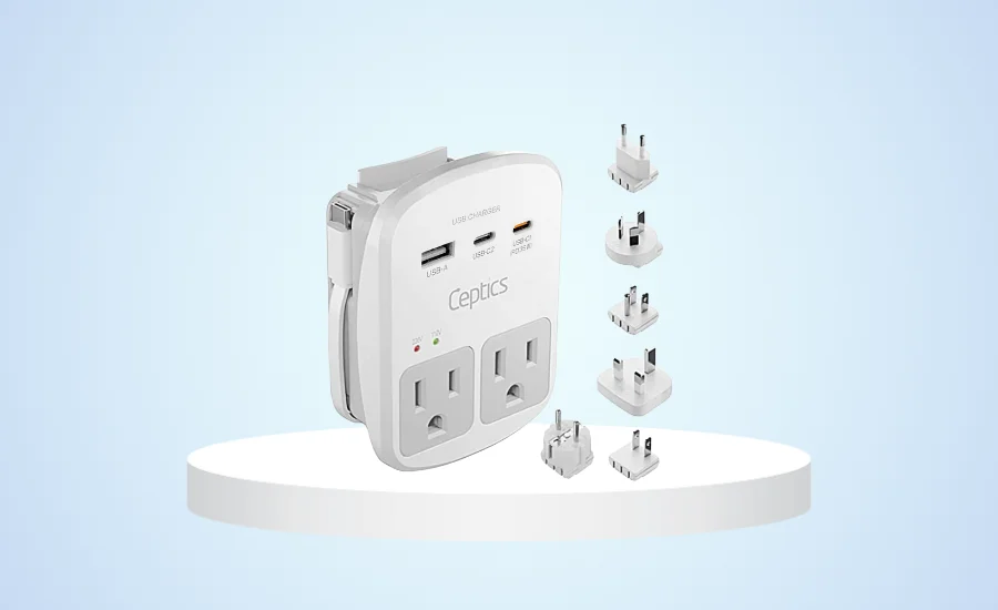| Ceptics World Travel Adapter Kit | Detachable plugs, surge protection, dual voltage support | ~$14.99 | 1 AC, 2 USB-A, 1 USB-C |