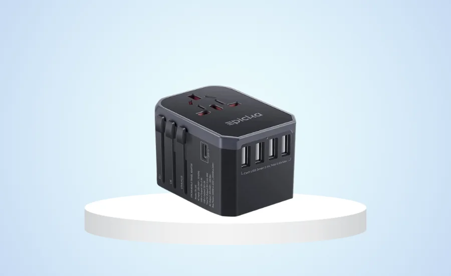 | Epicka Universal Travel Adapter | Auto-resetting fuse, GaN technology | ~$29.99 | 1 AC, 3 USB-C, 2 USB-A |