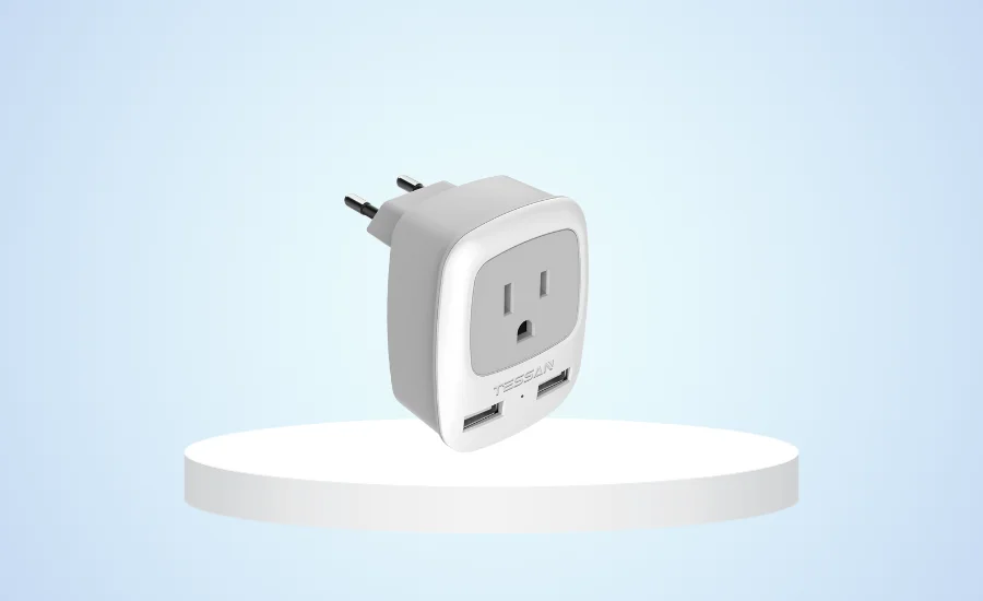 | Tessan Universal Travel Adapter | 100W GaN USB-C PD, dynamic temperature sensors | ~$49.99 | 1 AC, 2 USB-A, 2 USB-C |