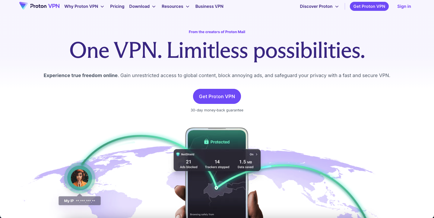 ProtonVPN is a popular and secure VPN service that cares about your privacy. It doesn’t track or store your data, keeping your online activity completely private. Located in Switzerland, it follows strong privacy laws.