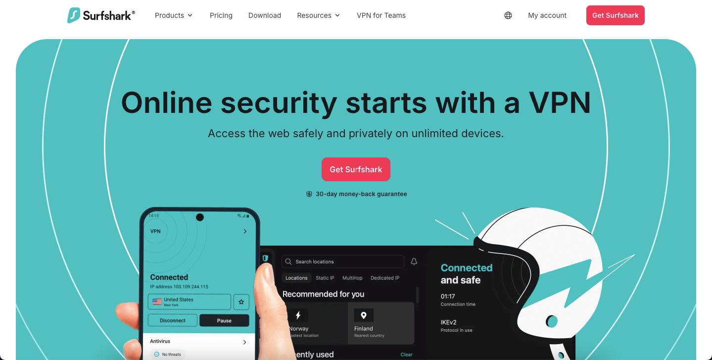 Additional features like CleanWeb for blocking ads and trackers enhance protection. Surfshark is a budget-friendly choice for secure and hassle-free online activities.