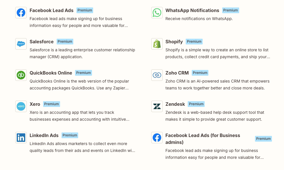 Certain apps like PayPal, Salesforce, QuickBooks, and Shopify are only available on paid plans. When I needed to automate my Shopify store orders, I had to upgrade from the Free plan. These premium integrations are worth it, but it’s another reason your costs can climb.