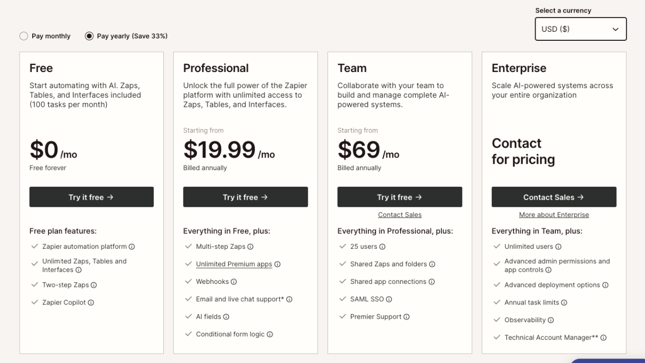 This is where Zapier gets more powerful. I built a workflow that took new leads from my CRM, enriched them with data from another API, added them to our email list, and created a calendar event. All with the visual builder and no code required. The Professional plan ($29.99/month) gives you unlimited multi-step workflows, which is fantastic.