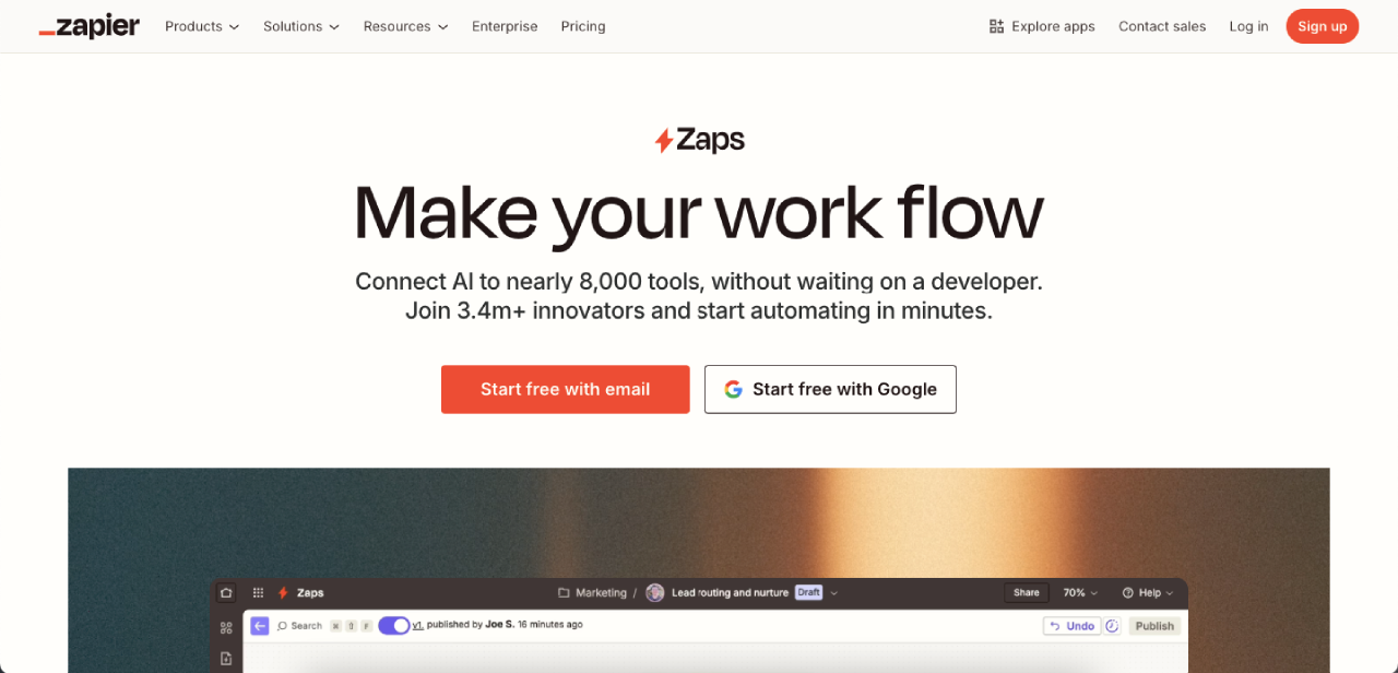 I tested Zapier’s AI capabilities recently. You can tell the AI to “create a workflow that moves Gmail attachments to Google Drive,” and it builds most of it for you.